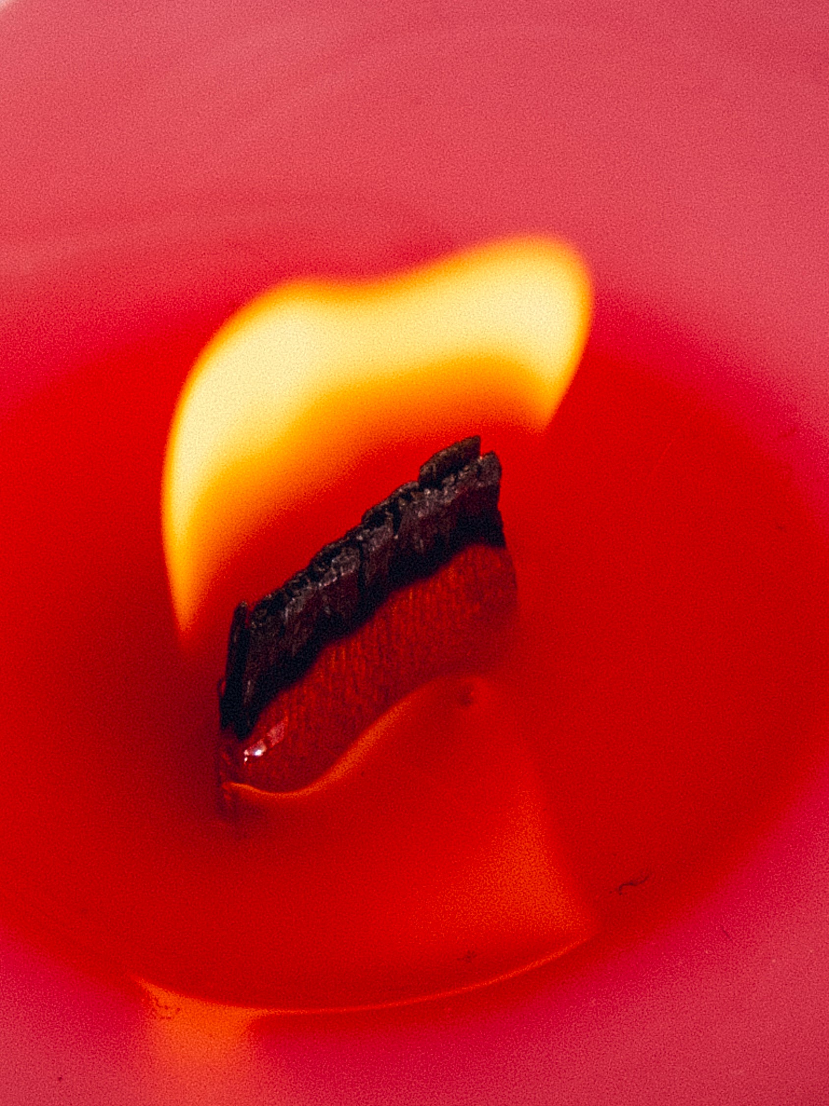 The Art of Trimming: Before each burn, trim your wooden wick with wick clippers or with your fingers pinch the top layer of the already burned wooden wick (ensure the candle is cool before touching).